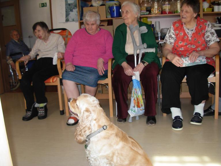 Canisterapie - velmi oblíbená aktivita našich klientů. Každý se rád potěší s pejskem. V březnu nás navštívila slečna Jana Lajnerová se svým pejskem celkem dvakrát a vždy byla srdečně vítána našimi klienty.