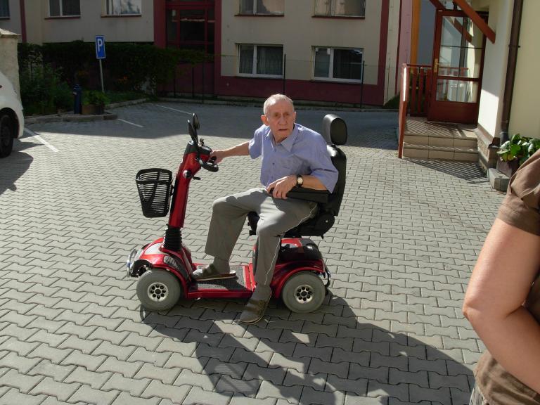 Toto dopoledne nám zástupce firmy Medicco předvedl elektrické inv. skůtry, které si sami klienti mohli vyzkoušet na venkovním prostranství domova. Někteří klienti byli přímo nadšeni s jakou lehkostí a jednoducjostí se tyto skútry ovládají.