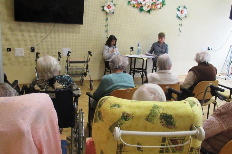 Dnešní setkání s dětmi z MŠ Svojsíka proběhlo ve veselém duchu cvičení, her a zpěvu. Děti si pro nás připravili několik písniček s ukázkou školkového cvičení a na oplátku si společně s uživateli zacvičili pod vedením našich fyzioterapeutek. Společné zpívání, hry, povídání, dětský smích, bezprostřednost a živelnost vnesla do našeho domova radost a pozitivní energii. Čas strávený společně při setkávání generací je obohacením jak pro seniory, tak pro děti a my každou takovou návštěvu vítáme.