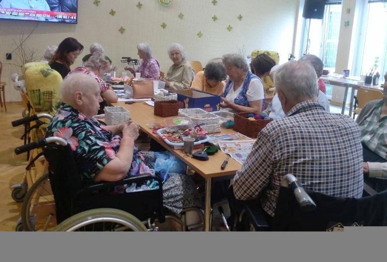 Rukodělné činnosti v našem domově se konají nejen na společenském sále, ale také v patře na modrém oddělení... Důležité je, při společném setkávání, mít příjemný prostor, kde je možnost si popovídat, vidět své sousedy, zkusit se pobavit a hlavně odejít s dobrou náladou a těšit se na příště.