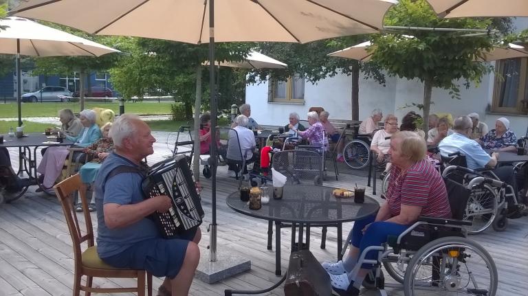 Na dnešní odpoledne, které jsme strávili v zahradě DS s panem harmonikářem, se uživatelé moc těšili. Společně jsme si zazpívali známé písničky a pochutnali si na třešňové bublanině a dobré kávě. Děkujeme panu harmonikáři za jeho čas a energii, kterou našemu domovu nezištně věnuje a těšíme se na příští setkání.