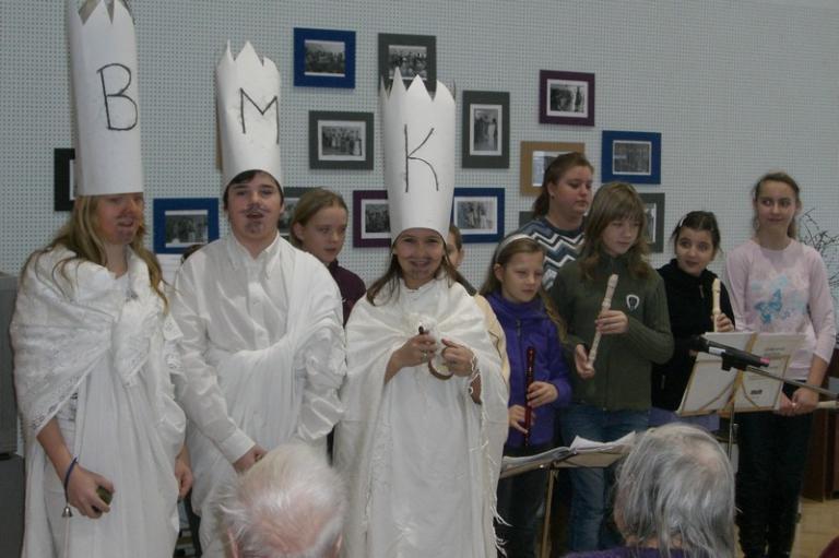 Děti si připravily pásmo básniček, tanečků a koled. Na závěr rozdaly všem přáníčka. Naši obyvatelé jim darovali slona pro štěstí - hračku vyráběli v rámci ergoterapie.